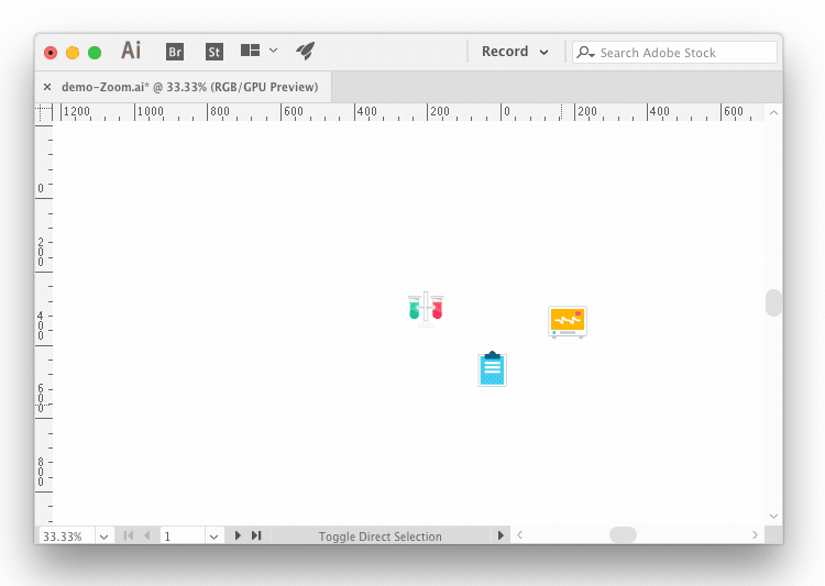 Zooms active view to selection or to all object(s) in a document. If you want a different scale ratio, open the script file with a text editor and change the SCALE_RATIO = .75;.