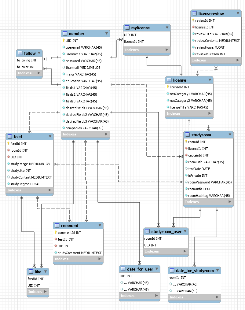 - SNS 기반의 스터디 룸으로 팔로우, 팔로잉, 좋아요 및 댓글을 통해 유저간의 소통이 가능하다.